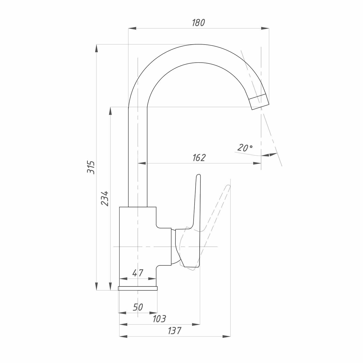 | Длина излива | 180 мм |