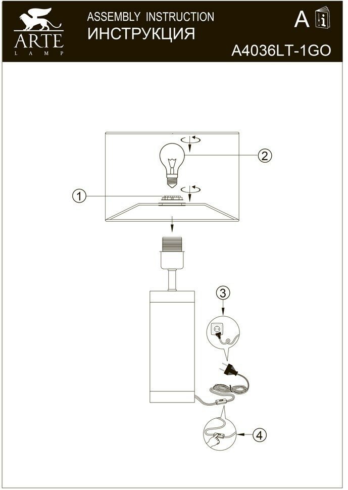 Настольные лампы и светильники Arte Lamp A4036LT-1GO