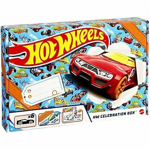 Купить Hot Wheels GWN96 Celebration Box Полный стартовый набор с 6 транспортными средствами, трассами и рампами, гоночная трасса для игрушечных машинок от 4 лет