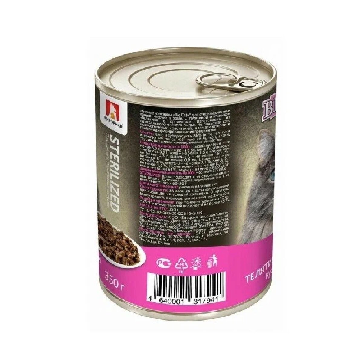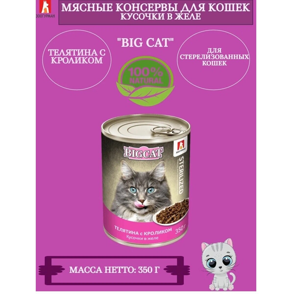 Консервы zoogurman для стерилизованных кошек телятина и кролик кусочки в желе big cat sterilized 350г 7941