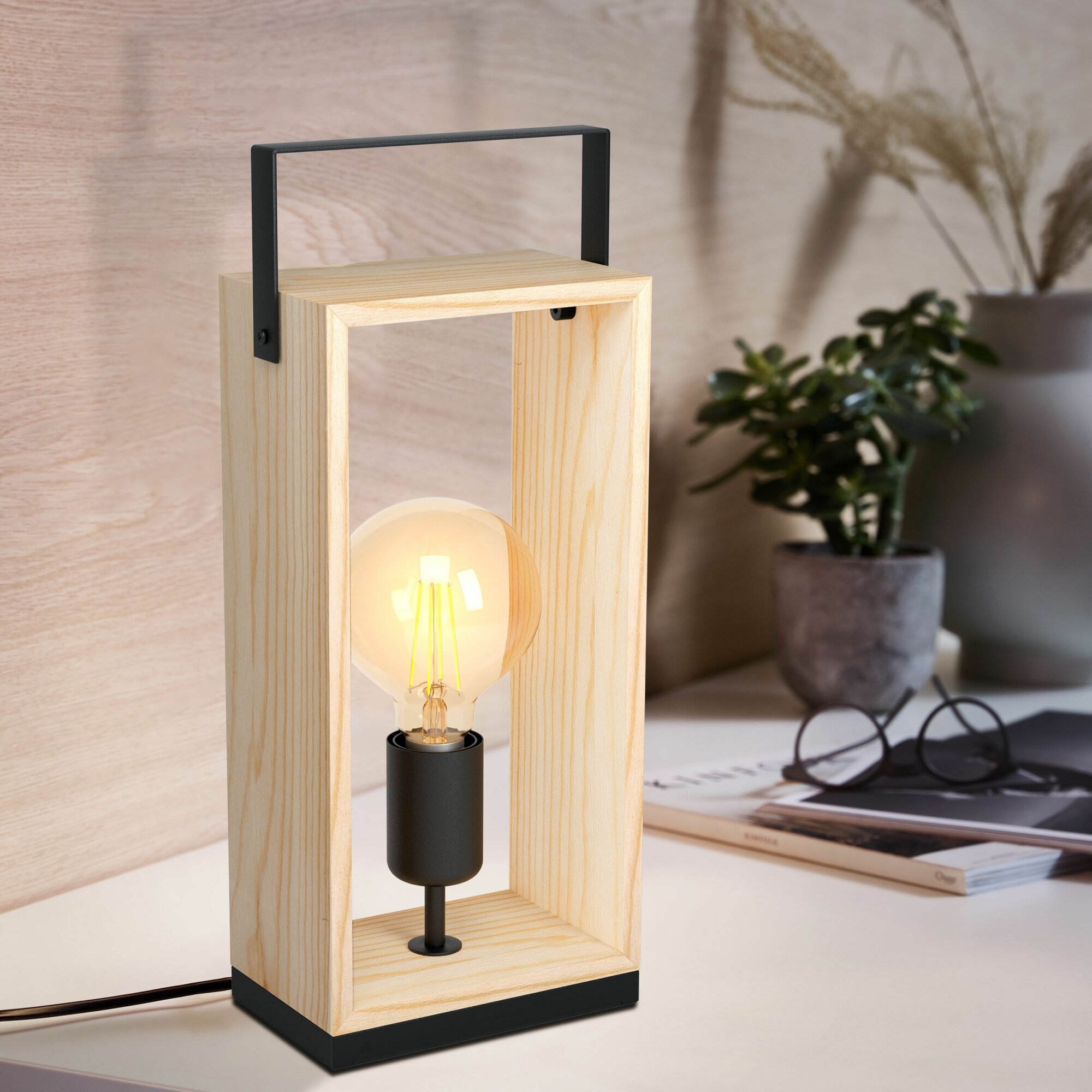 43415 Наст. лампа FAMBOROUGH, 1х40W (E27), 160х100, H400, основа 160х100, сталь, дерево, черный, нат