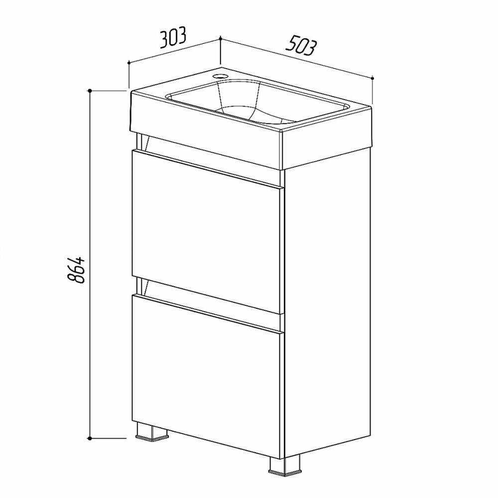 Тумба с раковиной Belux Темпо НП 50 белый глянцевый (1) левый