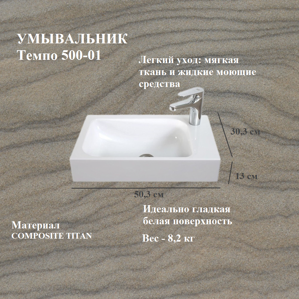 Тумба с раковиной Темпо Н 50-01 Бетон Чикаго светло-серый (31) левый интересное: