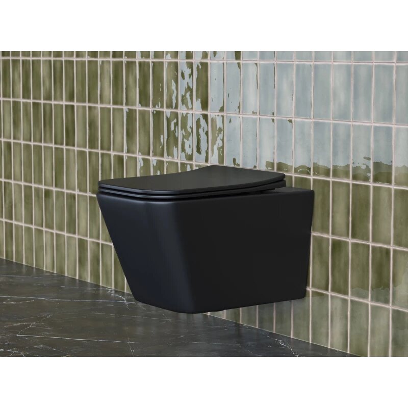 Унитаз подвесной Ceramicanova Metric Rimless 510х345х340 безободковый,с сиденьем,черный мат.CN3007MB