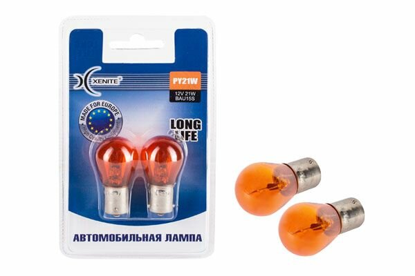 XENITE 1007112 Лампа накаливания сигнальная P21W BA15s 3200K Long Life 12V 21W Блистер 2 шт