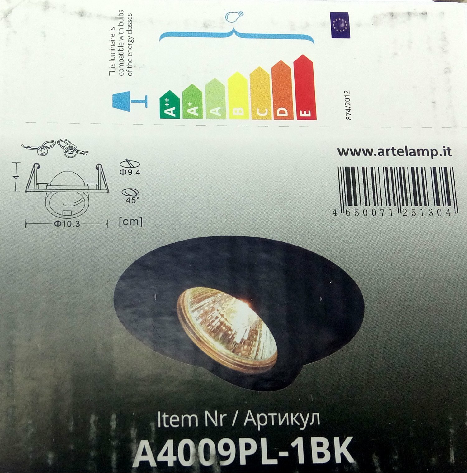 Встраиваемый светильник ARTE Lamp A4009PL-1BK