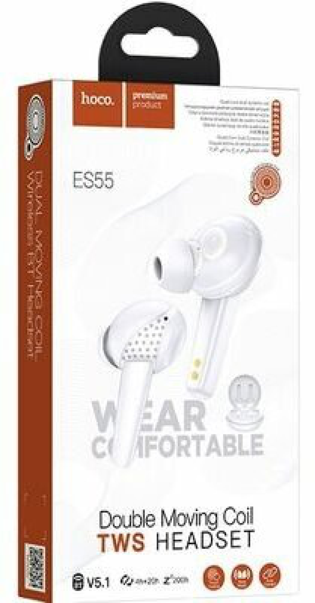 Наушники ES55, HOCO, беспроводные наушники, капельки, белые