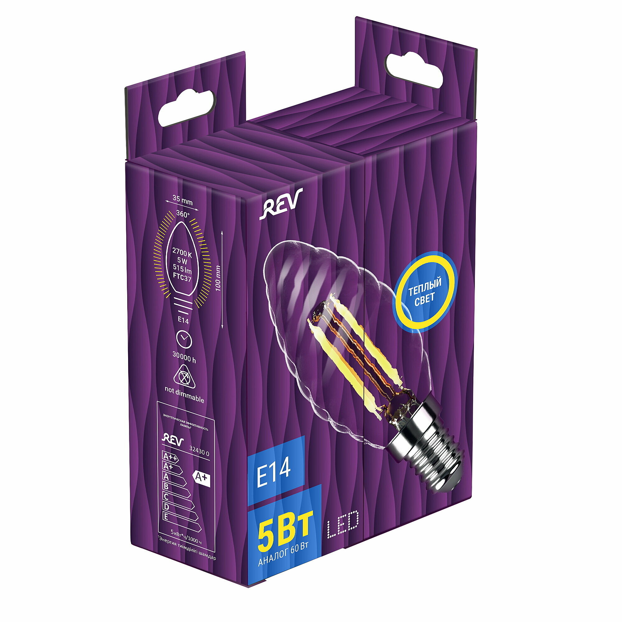 Упаковка светодиодных филаментных ламп 10 шт REV 32430 0, 2700К, Е14, FTC37, 5Вт