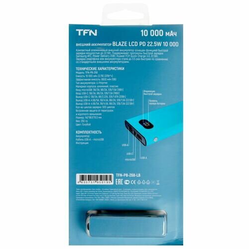 Купить Внешний аккумулятор TFN Blaze LCD PD 22.5W 10000mAh (голубой)