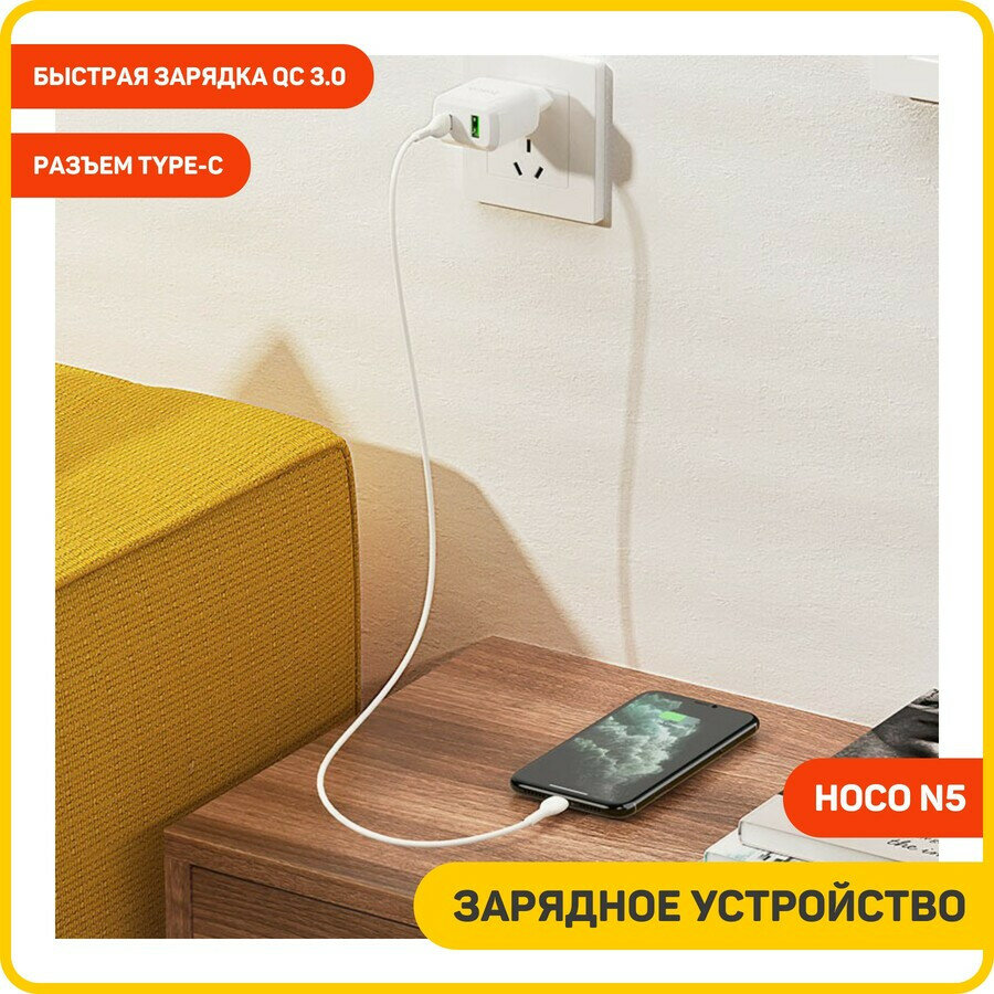 СохранитьСетевое зарядное устройство, 1 USB 3.0 QC+1 PD 20W (N5), HOCO, Type-C to Lightning, Умная зарядка, белый интересное: