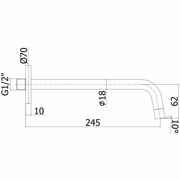 Излив из стены Paffoni, серии LIGHT, d.18, длина mm.245 подкл. 1/2" с латунной накладкой d.70, черный матовый ZBOC046NO