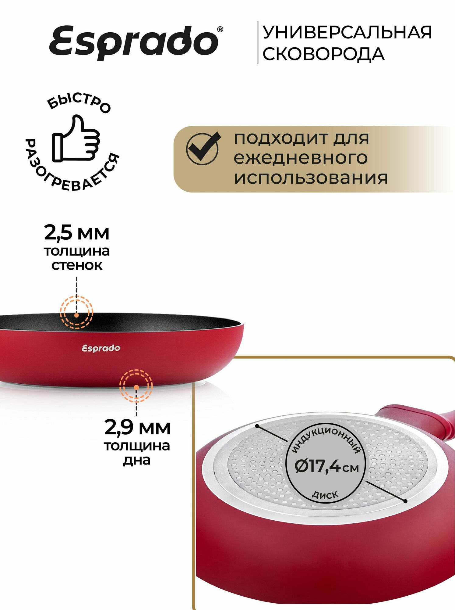 сковорода ESPRADO Primera 20см антипригарная, штампованный алюминий, индукция