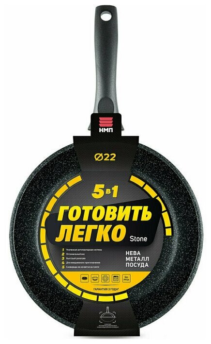 Сковорода 22 Нева Металл Посуда НМП "Готовить легко" stone н/р