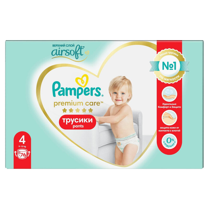 Трусики Pampers Premium Care 9-15 кг, размер 4, 76 шт