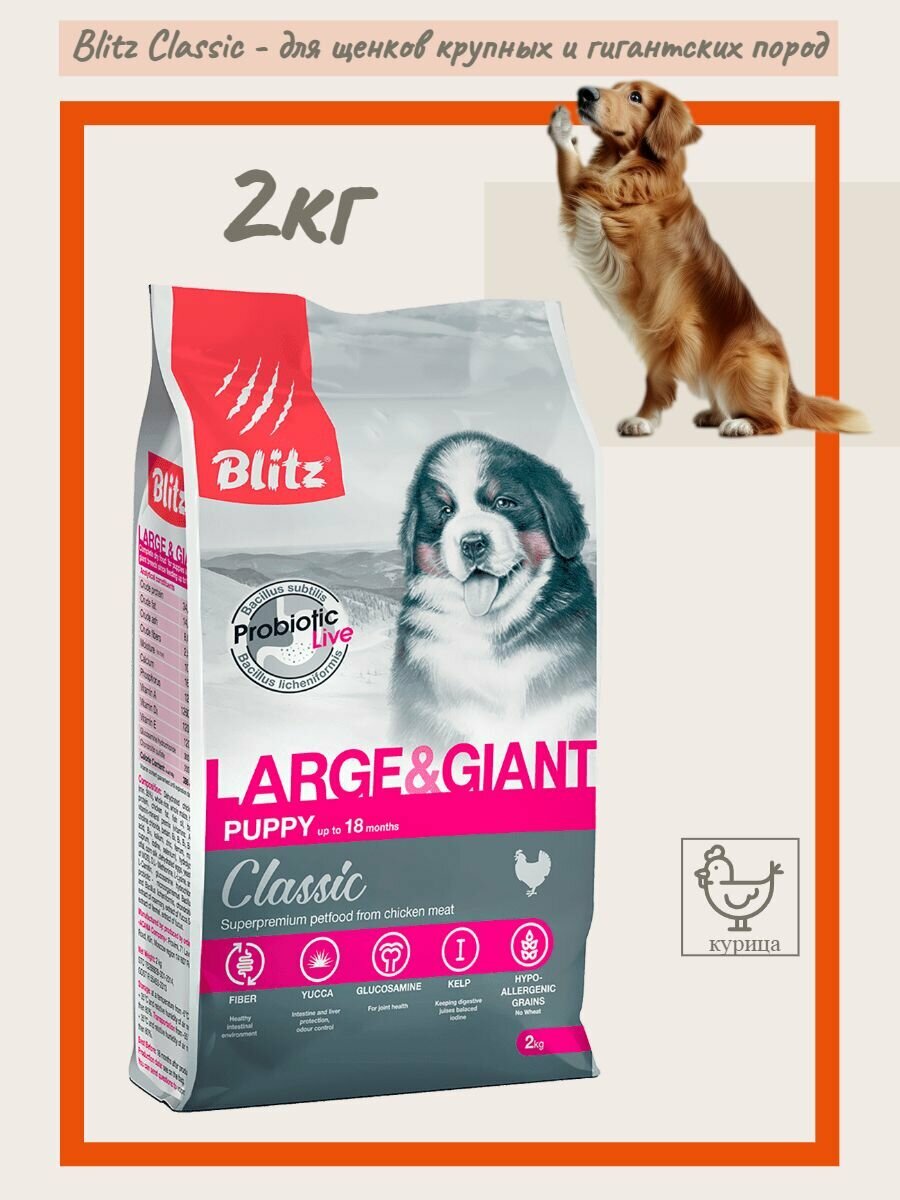 Корм сухой BLITZ Classic Puppy Large & Giant Breeds 2 кг (2 шт), для щенков крупных и гигантских пород (курица) полнорационный