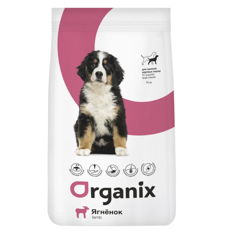 Сухой корм Organix для щенков крупных пород, с ягненком, 18 кг