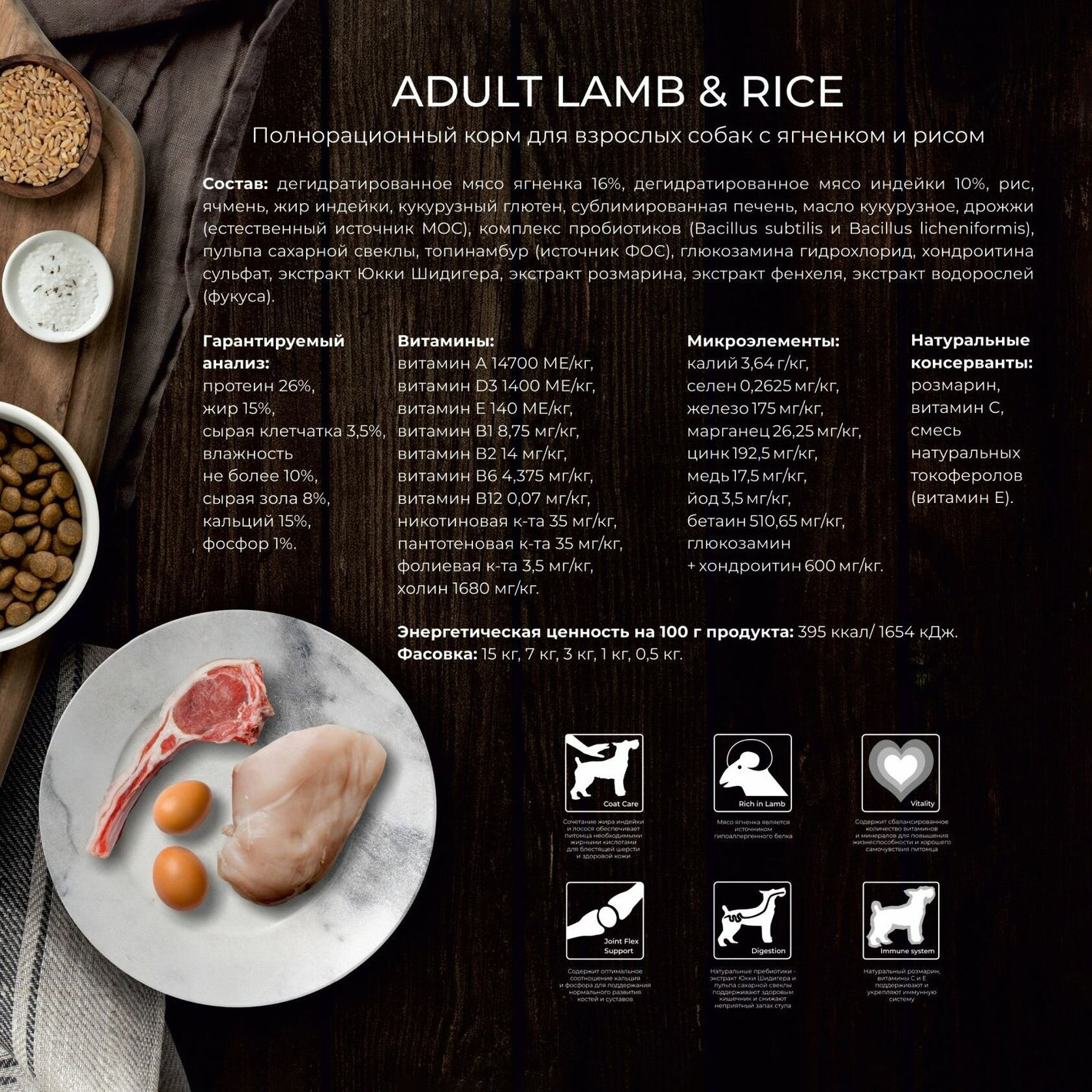LiveRA Сухой корм для взрослых собак, ягненок с рисом Adult Lamb & Rice, 3.5кг 3.5 кг