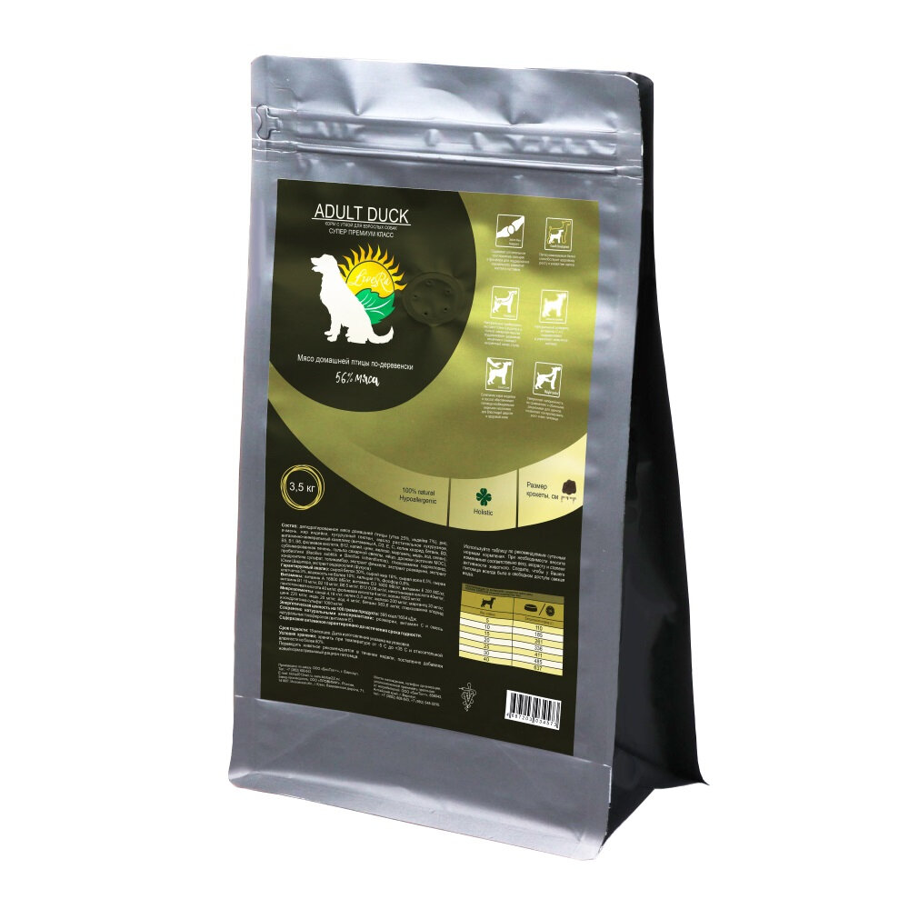 LiveRa Полнорационный сухой корм для взрослых собак Adult Duck, 15 кг, вкуснейшее блюдо из запеченой утки