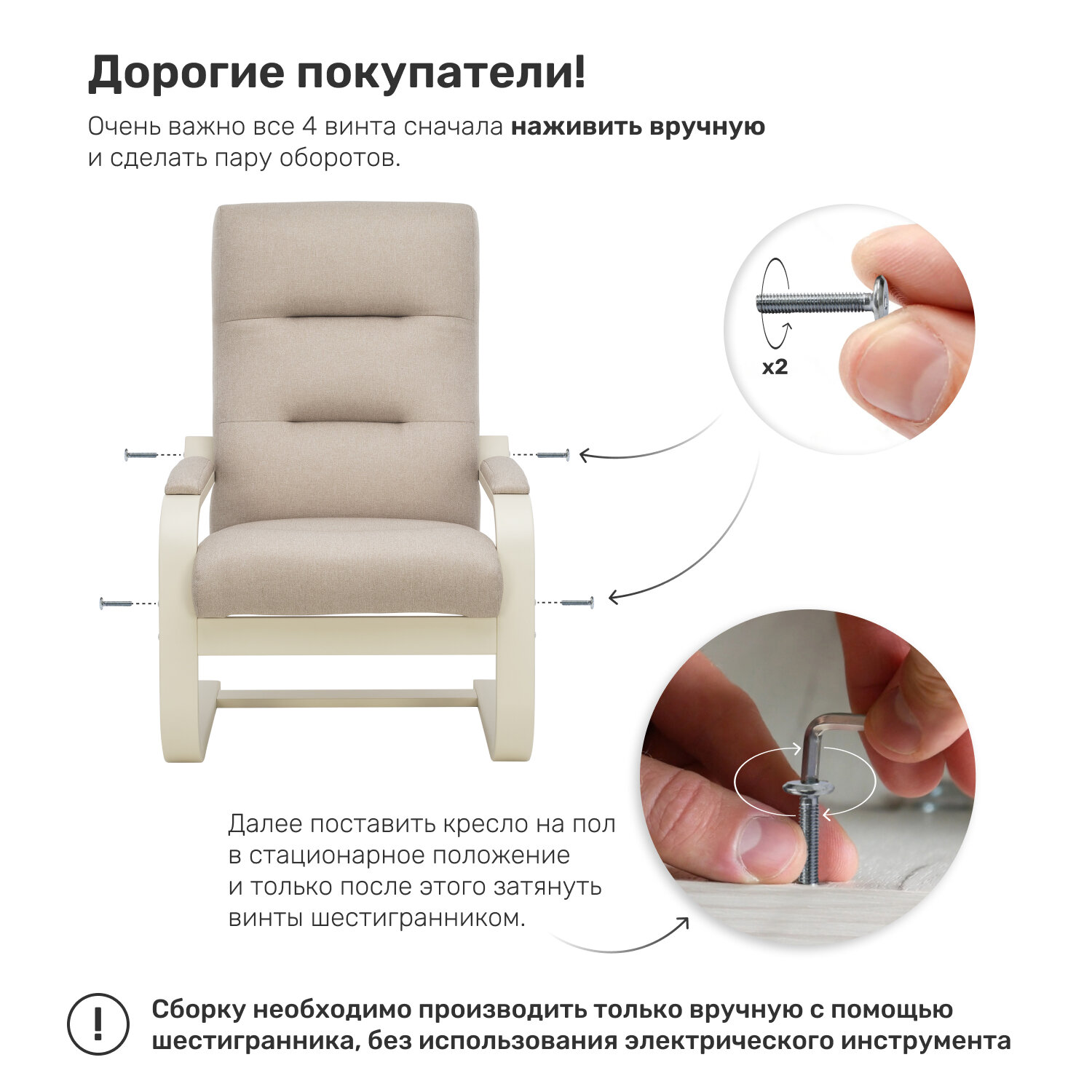 Кресло-маятник для отдыха Дэми, Слоновая кость, рогожка Malmo 05