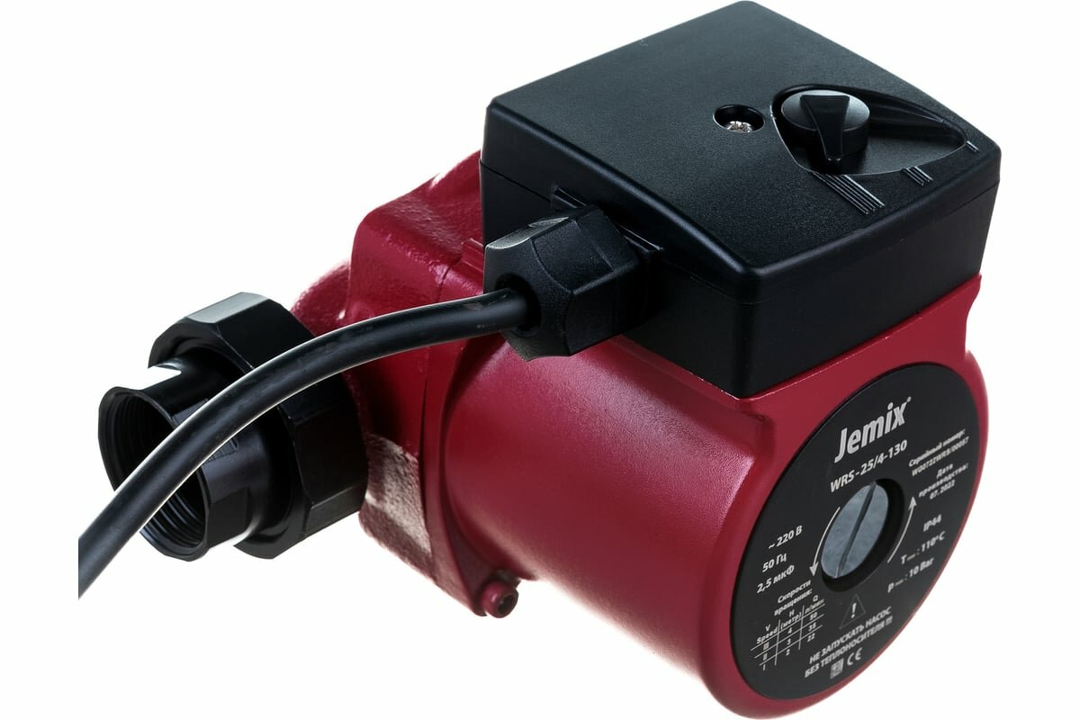 Насос циркуляционный JEMIX WRS-25/4-130 для отопления с кабелем 60 см с вилкой, гайки в комплекте