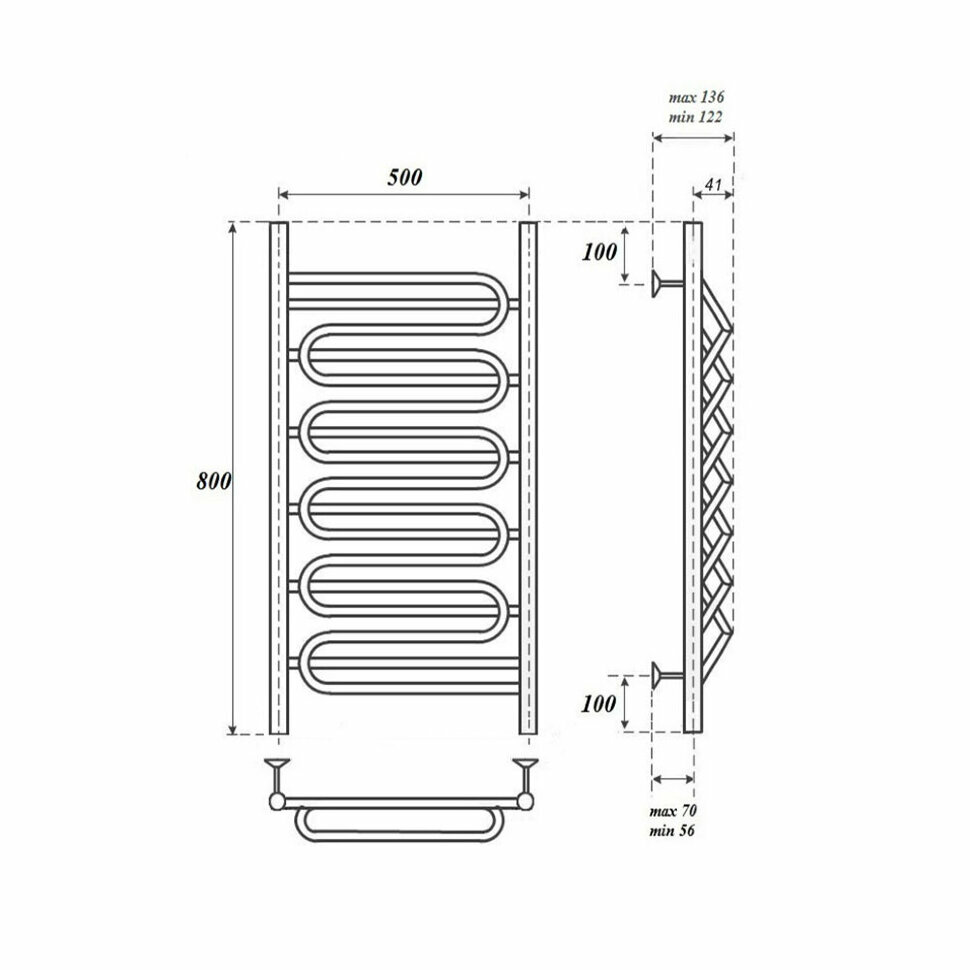 Водяной полотенцесушитель Aquanet Mauro(г2) 800x500