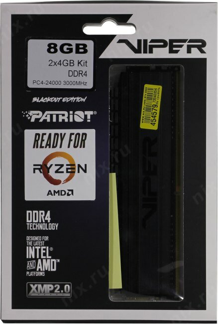Оперативная память 8Gb DDR4 3000MHz Patriot Viper 4 Blackout (PVB48G300C6K) (2x4Gb KIT) (retail)