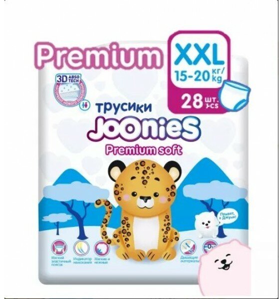 JOONIES Premium Soft Подгузники-трусики, размер XXL (15-20 кг), 28 шт.