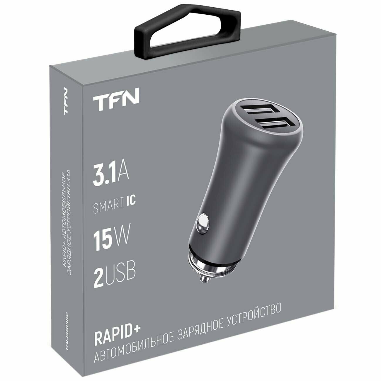 Купить Зарядное устройство автомобильное TFN Rapid+ 2xUSB 3.1A 15W, серый / Разветвитель прикуривателя/ 2 разъема