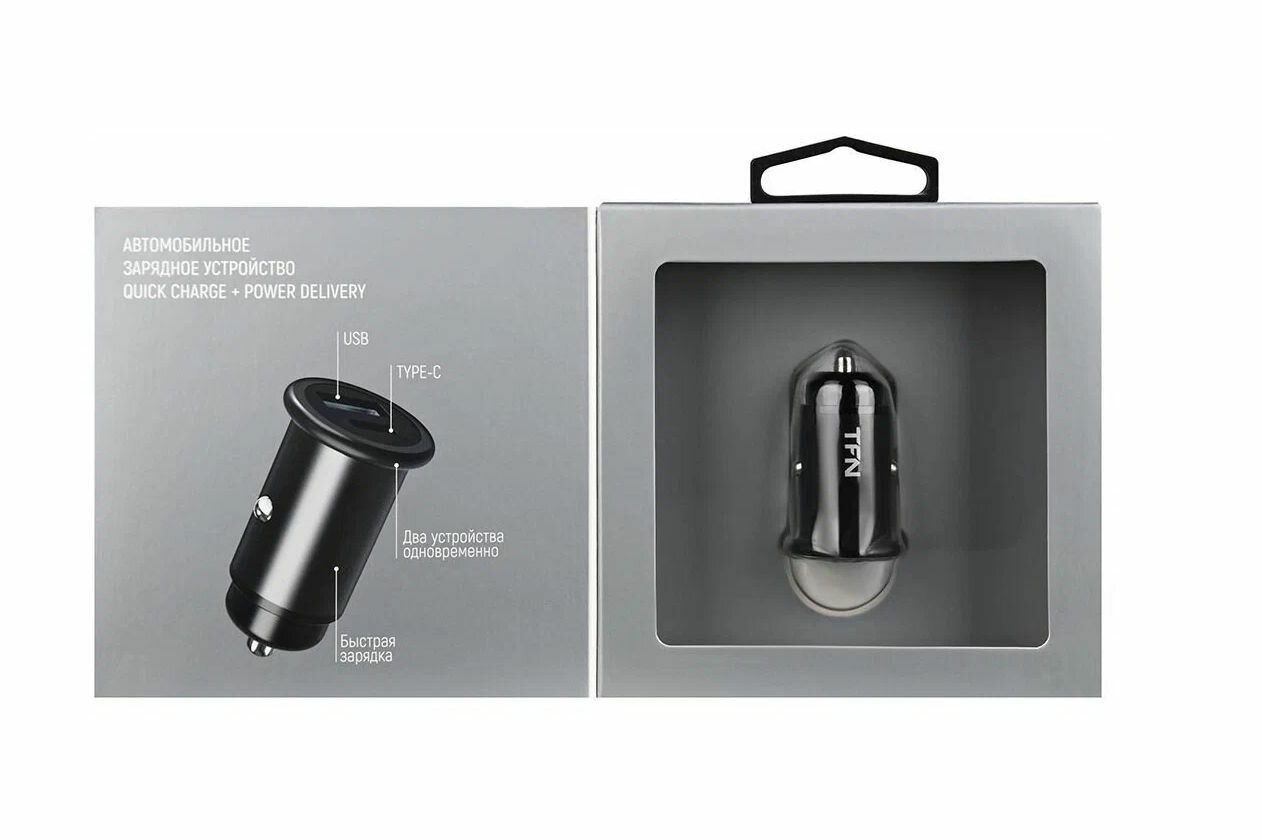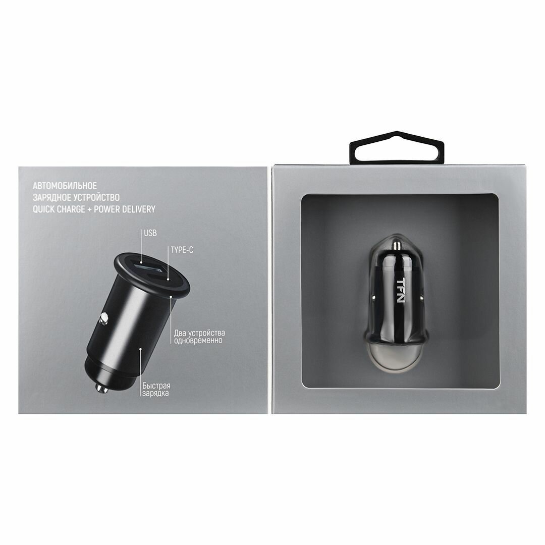 Автомобильное зарядное устройство TFN RAPID USB/Type-C, Quick Charge/Power Delivery, 20Вт, черный
