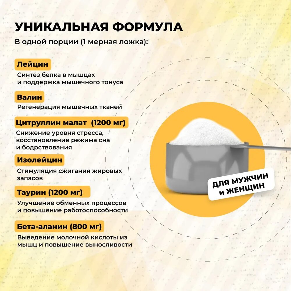 | Основной ингредиент | валин / изолейцин / лейцин / таурин / цитруллин |