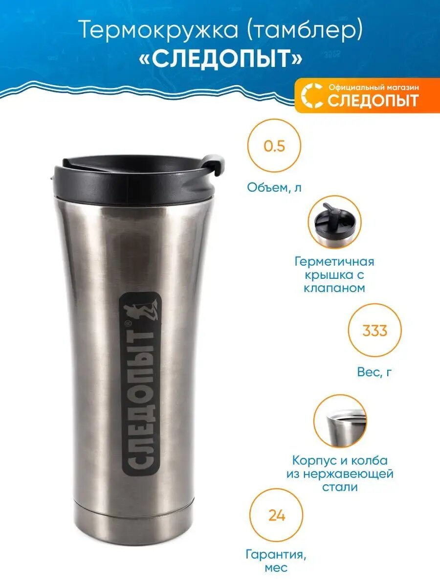 Термокружка (тамблер) "следопыт", нерж. сталь, 500 мл / Термостакан / Автокружка