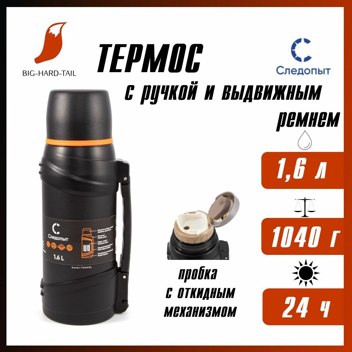 Термос "следопыт-safari TRAVEL", 1,3л на охоту и рыбалку в любое путешествие