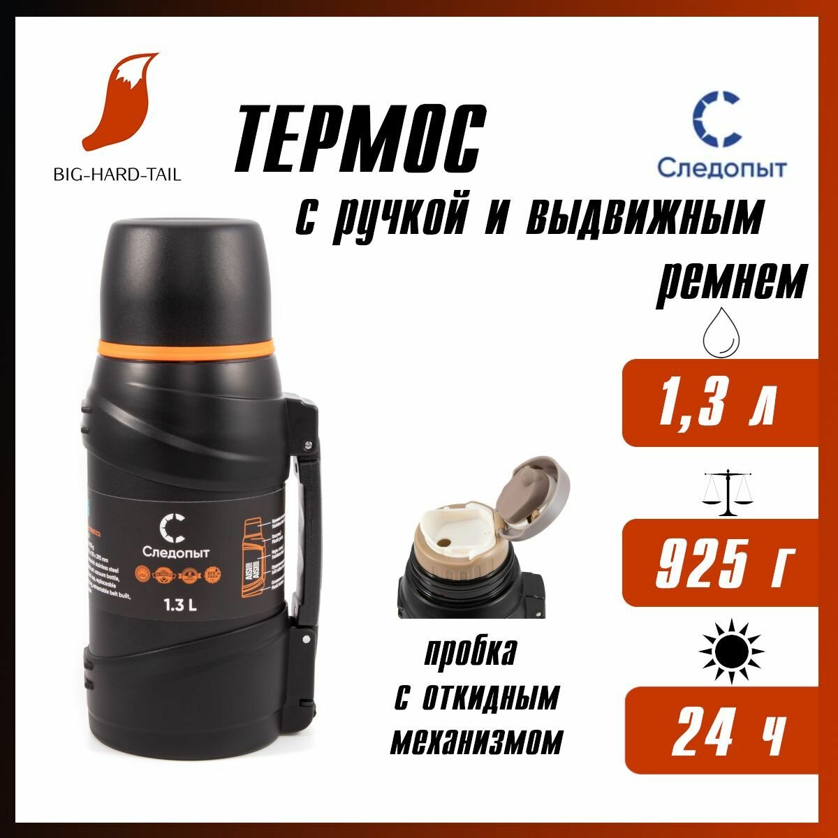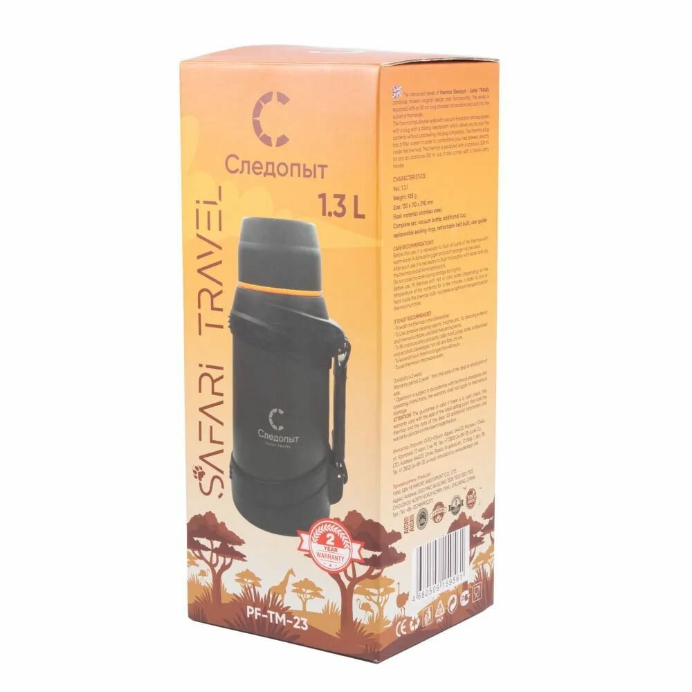 Термос "следопыт-safari TRAVEL", 1,3л на охоту и рыбалку в любое путешествие