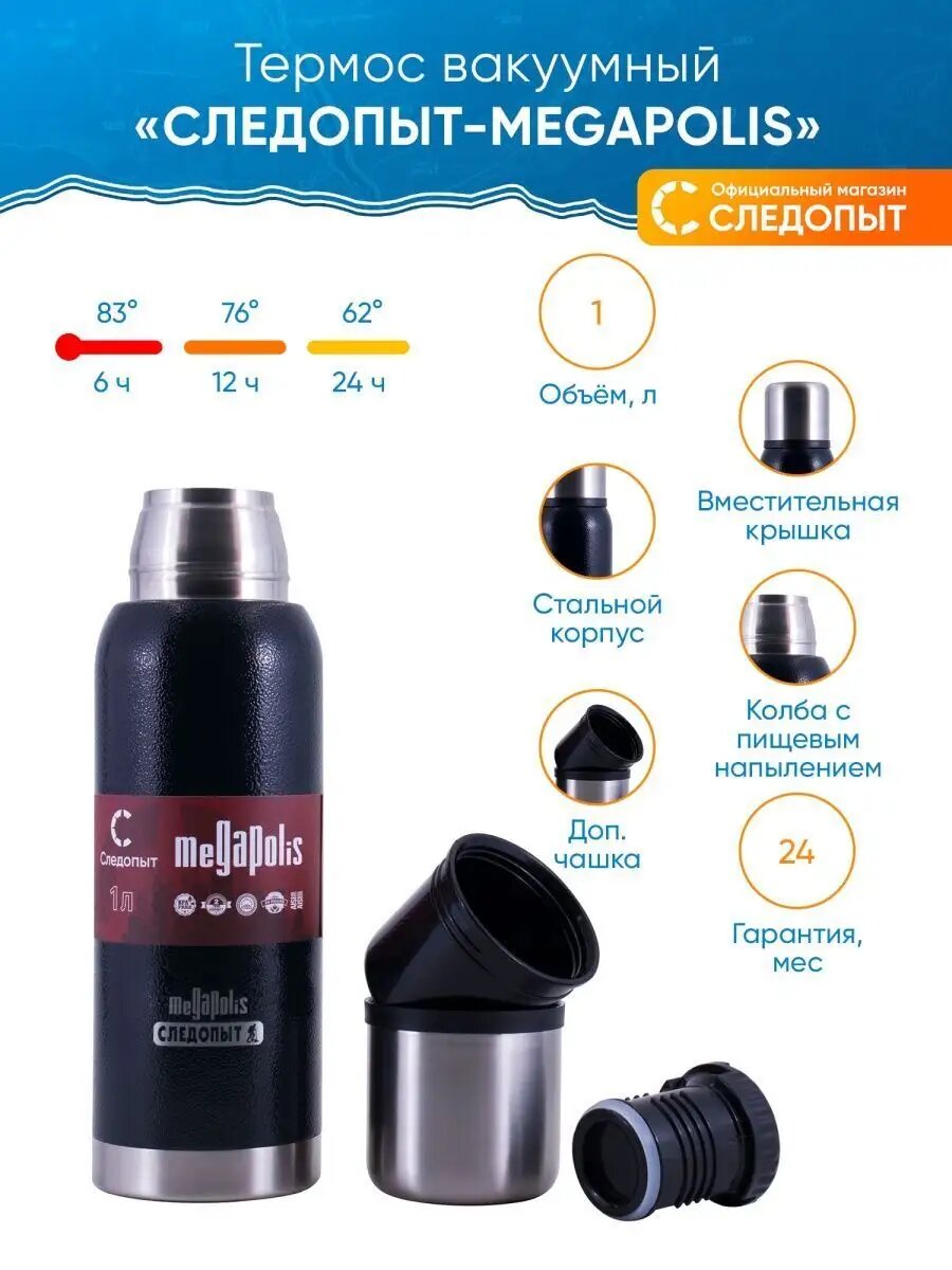 Ниже Вы можете прочитать отзывы на Термос вакуумный следопыт MEGAPOLIS 1 л, ознакомится с подробными характеристиками, посмотреть интересные обзоры и фотографии на Термос вакуумный следопыт MEGAPOLIS 1 л.
