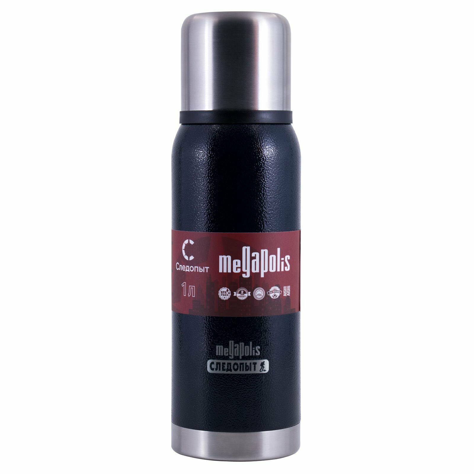 Термос Следопыт Мегаполис PF-TM-20, стальной, 0,75 л, вакуумный, черный/серебристый