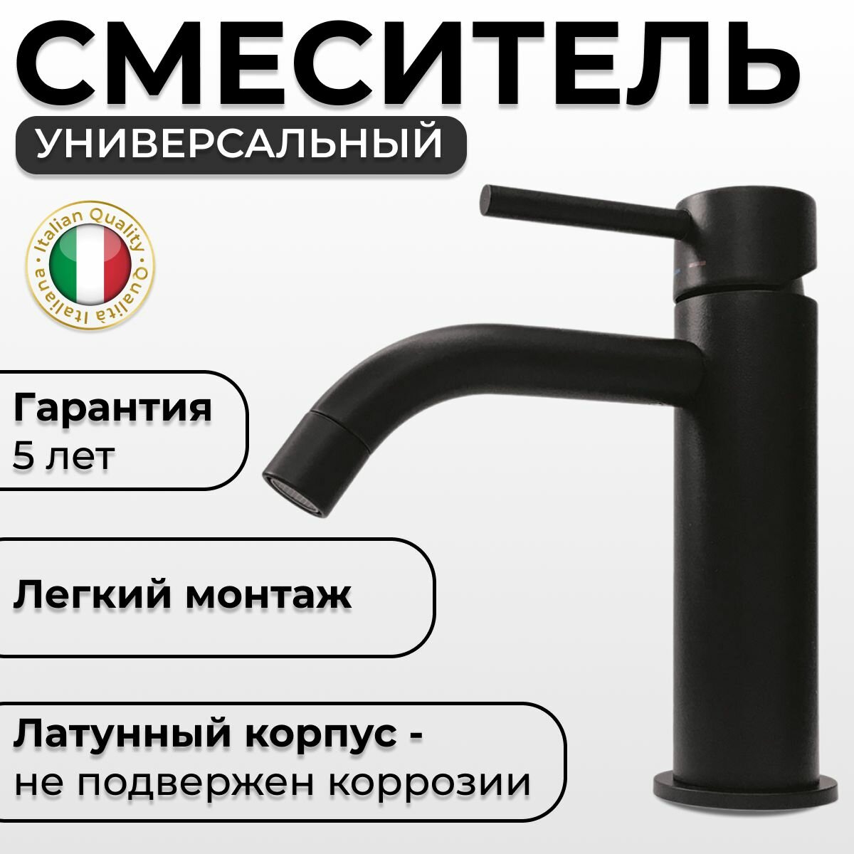 Смеситель Paffoni, серии LIGHT, для раковины без д/к, черный матовый LIG071NO
