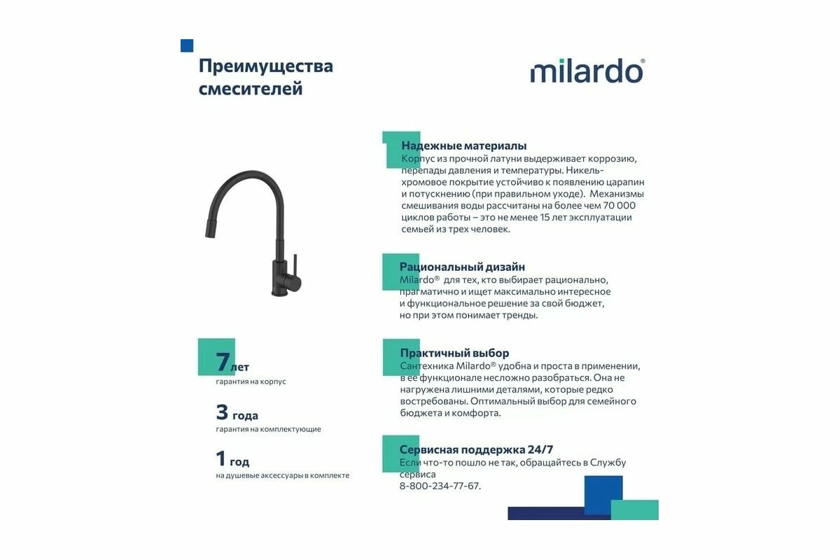 СохранитьСмеситель Milardo Meal M01BL0FM05 для кухонной мойки интересное: