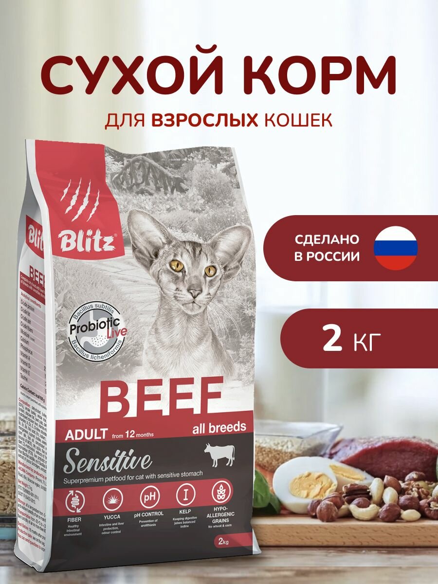 Купить BLITZ SENSITIVE ADULT CAT BEEF для взрослых кошек с говядиной 2 кг