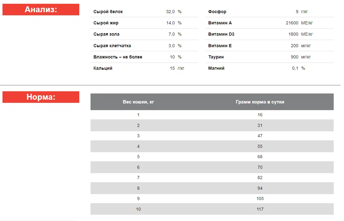 | Возраст животного | пожилые (7+) / взрослые (1-6 лет) |
