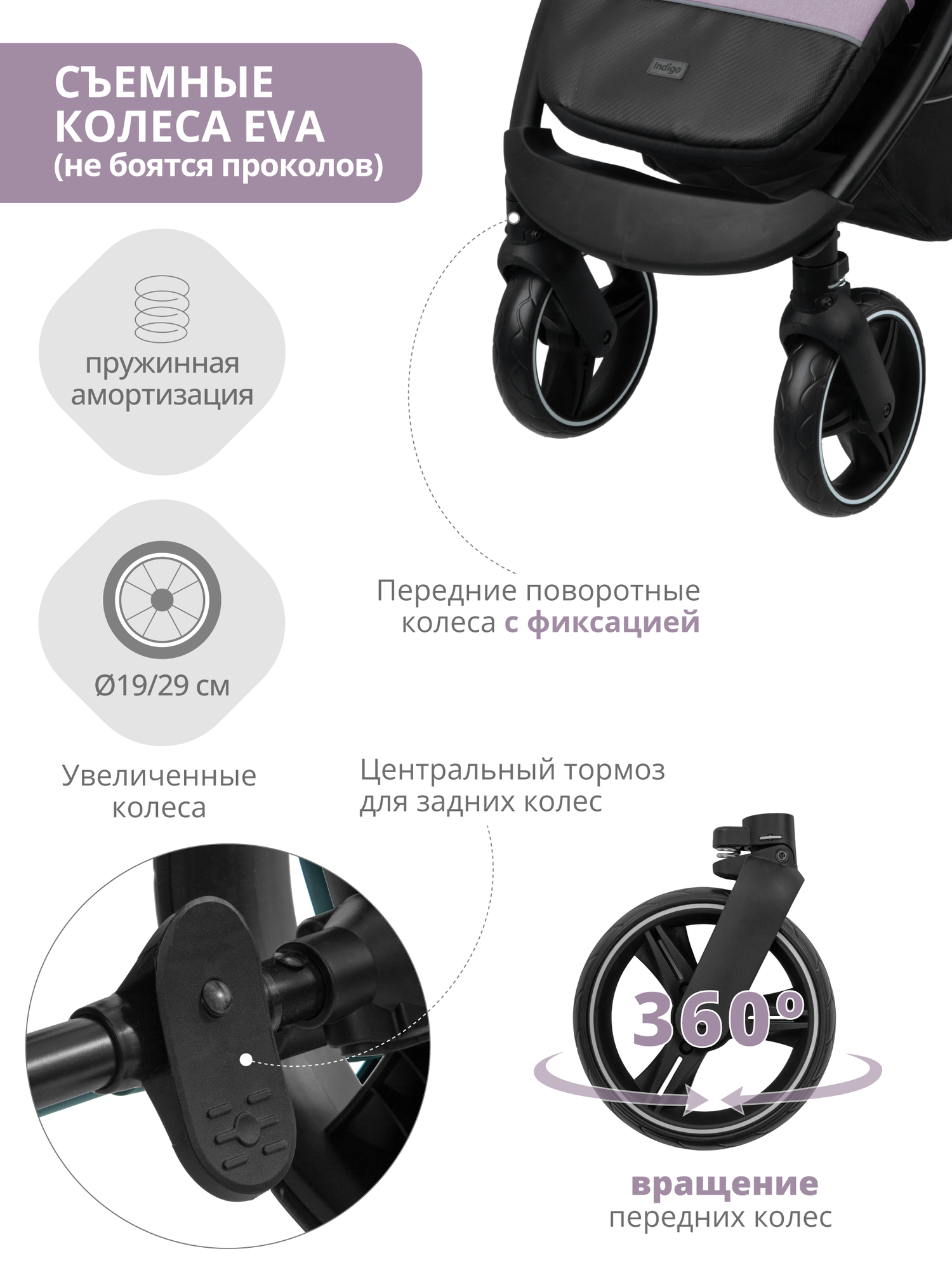 СохранитьПрогулочная коляска Indigo Epica XL, фиолетовый интересное: