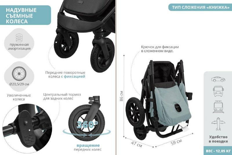 | Аксессуары в комплекте | антимоскитная сетка, бампер, держатель для бутылочки, дождевик, накидка на ноги, солнцезащитный козырек |