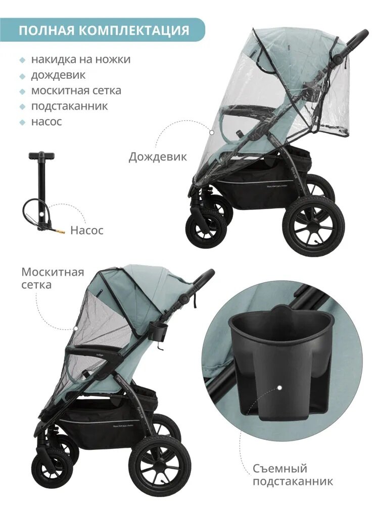| Комплектация | москитная сетка / дождевик / съемный держатель для бутылочек / накидка на ножки |