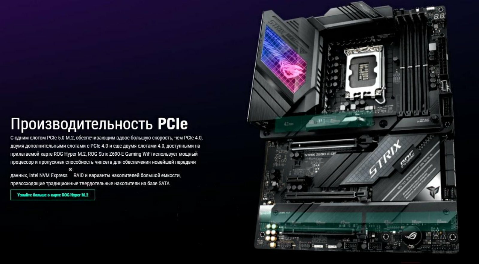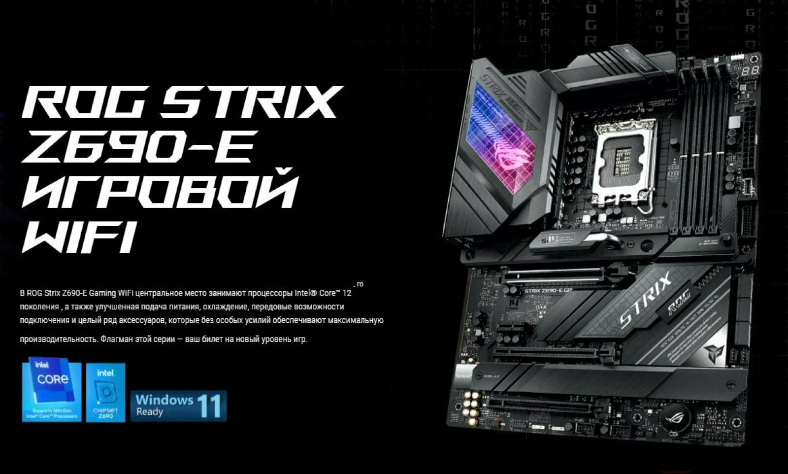 Материнская плата ASUS ROG STRIX Z690-E GAMING WIFI Socket 1700 Z690 4xDDR5 2xPCI-E 16x 1xPCI-E 1x 6xSATA III ATX Retail (90MB18J0-M0EAY0)