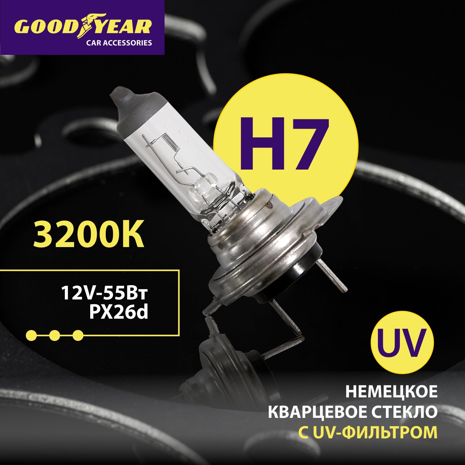 Лампа h7 галогеновая автомобильная Goodyear 12V 55W PX26d для Lada (Vesta/ Калина/ XRAY/ Priora/ Chevrolet-Niva) UAZ Patriot, VW Tiguan, Touareg, Passat B6 B7