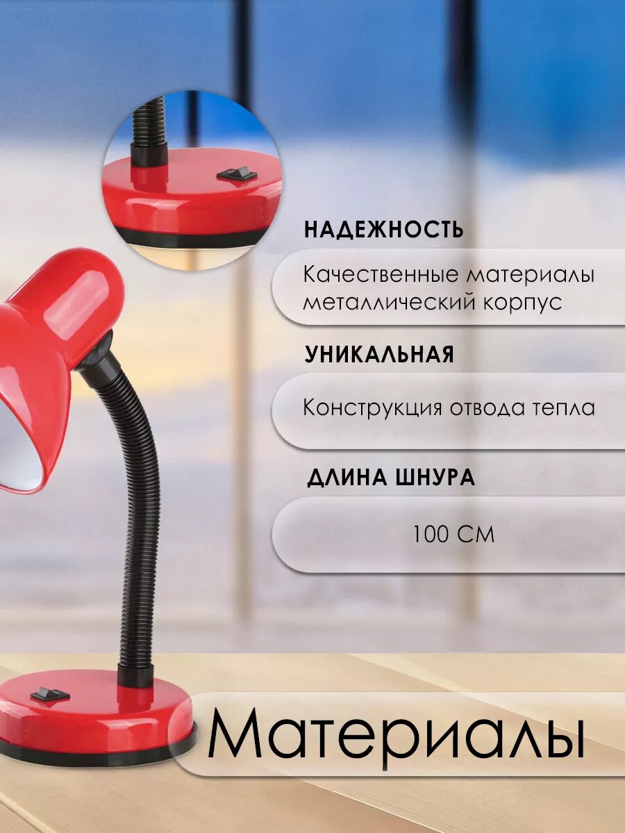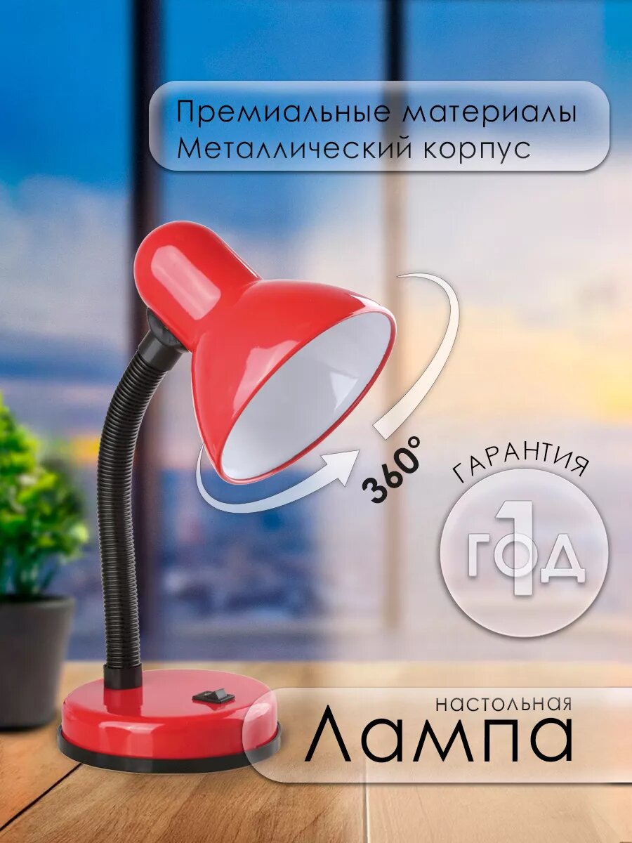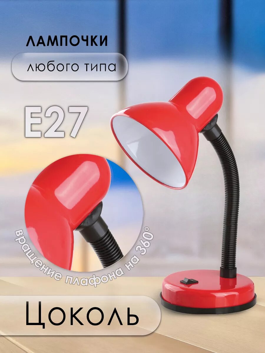 Лампа офисная Ultraflash UF-301 С04, E27, 60 Вт, красный