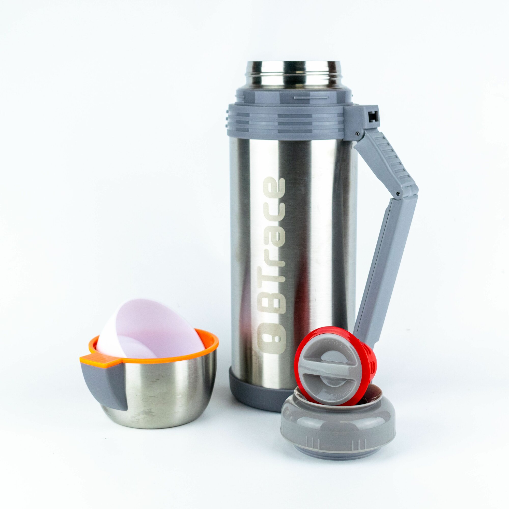 Купить Термос для еды и напитков Btrace 1,8 л, двойные стенки, серый, нержавеющая сталь, крышка-чашка, непроливайка, складная ручка