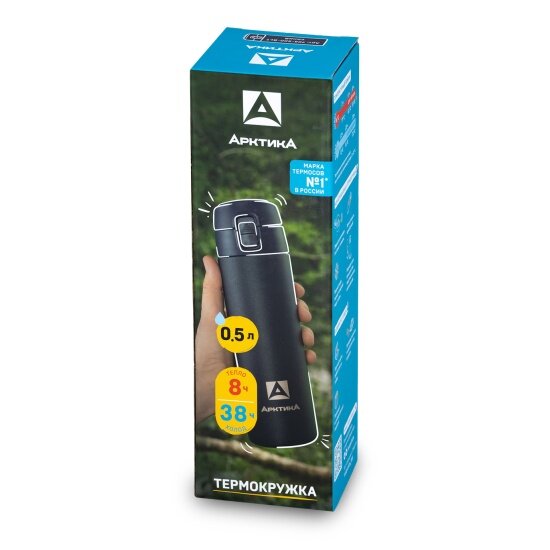 Термокружка Арктика 0.5 л/термос для чая 500 мл с кнопкой/термокружка 500 мл для кофе черная