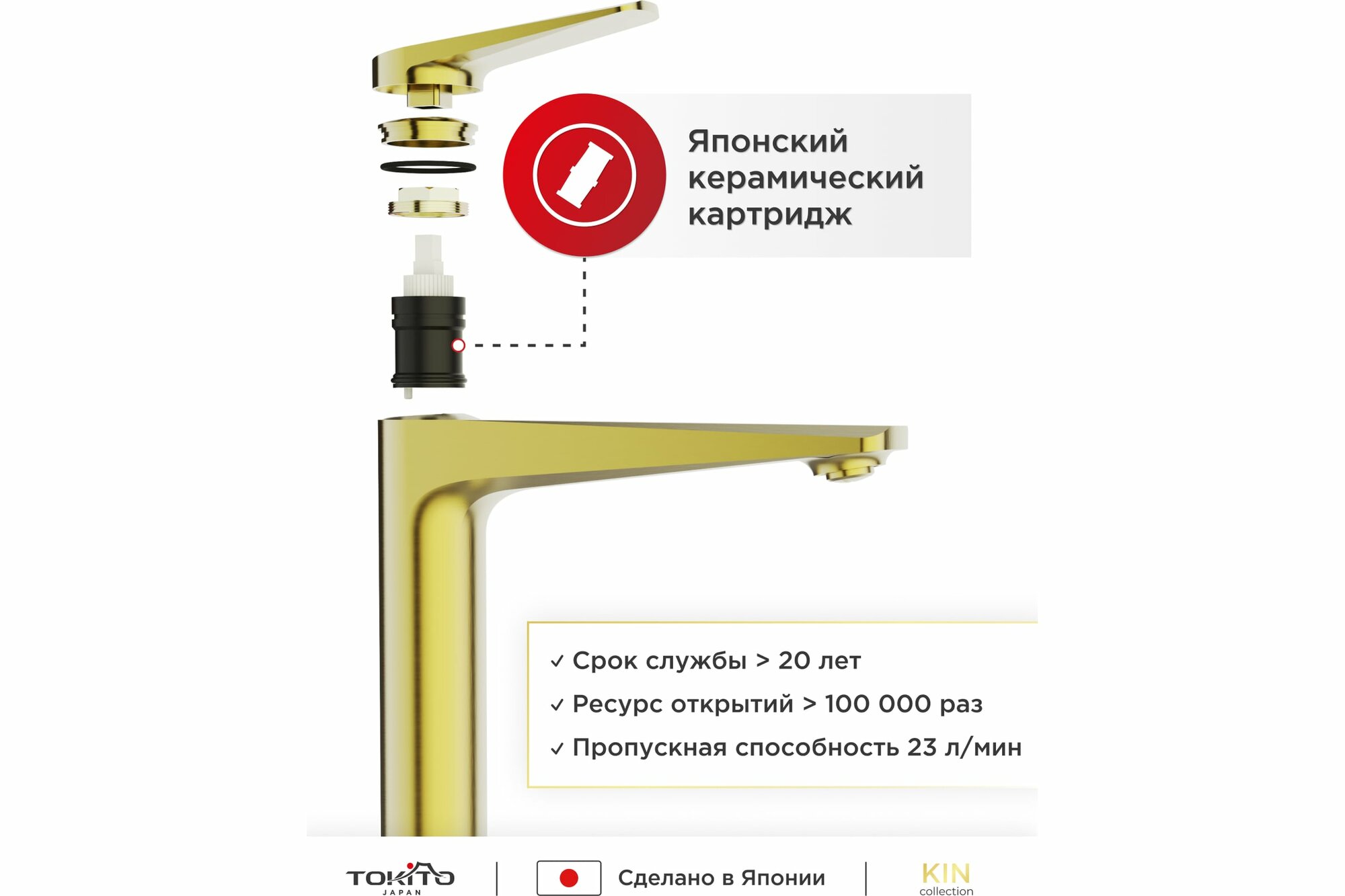 Смеситель для раковины с высоким изливом TOKITO TOK-KIN-1012 серия KIN, латунный, золотой