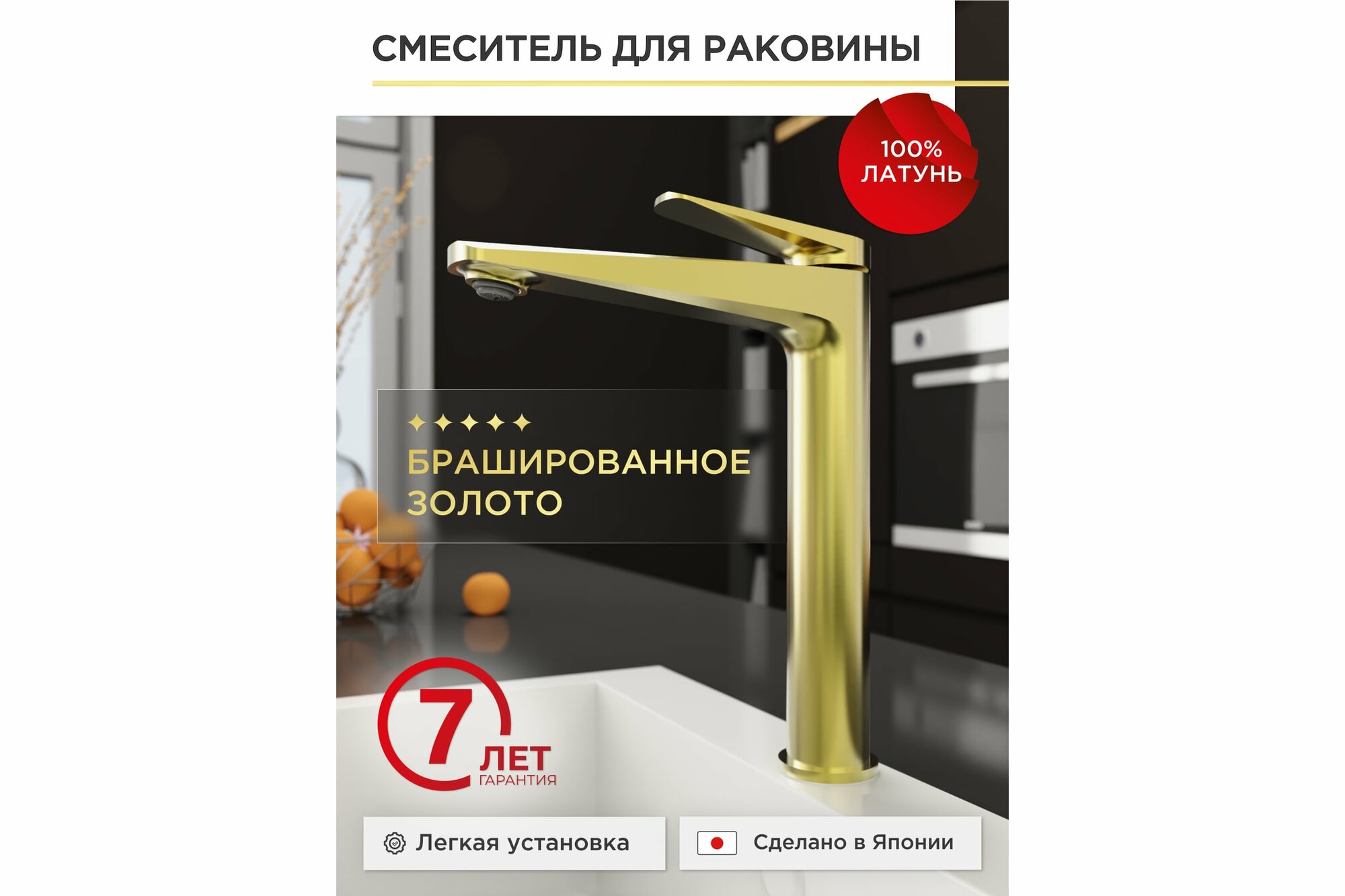 Купить Смеситель для раковины Tokito KIN высокий золотой TOK-KIN-1012
