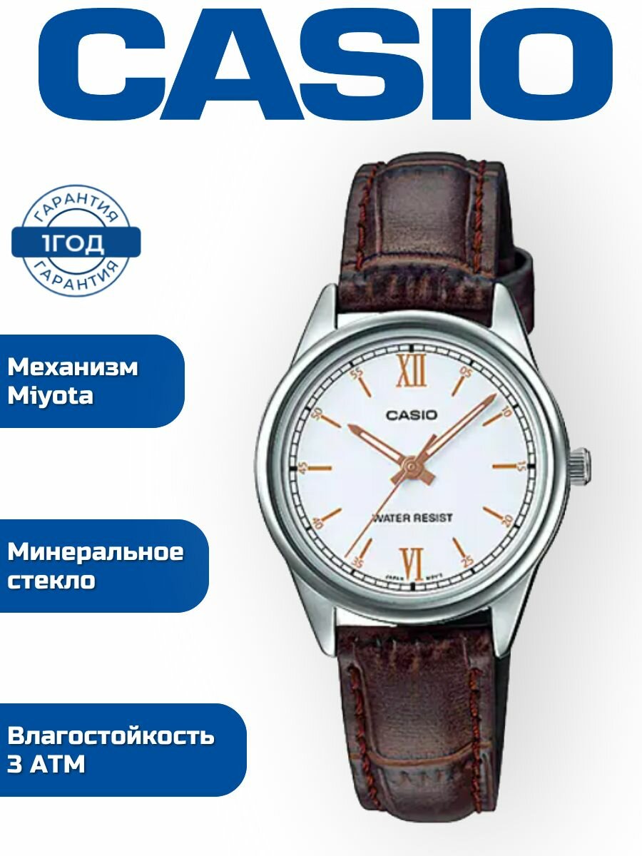Наручные часы CASIO Collection LTP-V005L-7B3, белый, коричневый интересное: